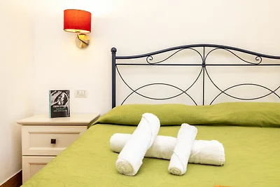 Al 1° piano: (Soggiorno(TV(satellite), aria condizionata), Armadio cucina(mobile cucina(4 fuochi), frigo con congelatore), Camera da letto(letto matrimoniale)