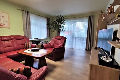 Accogliente appartamento per 5 persone, ingresso indipendente, vista sul giardino, terrazza propria, a 100 m dalla riva del Bodden, nel cuore del Parco Nazionale Vorpom. Boddenlandschaft