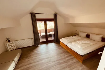 casa vacanze indipendente di 145 m² per 10 persone direttamente sul bosco con sauna, stufa a legna, piscina all'aperto con prato per prendere il sole, terrazza con camino per barbecue, trampolino, posti auto presso la casa