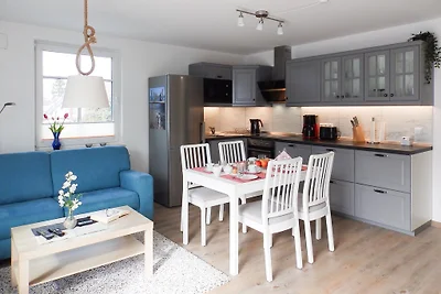 Appartamento comfort di alta qualità e arredato in modo accogliente, situato in posizione tranquilla, sotto la paglia, vicino alla spiaggia, per 2-4 persone, sauna nel complesso.