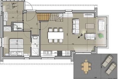 Tranquilla casa per vacanze fino a 6 pers. 100 mq esposizione sud; WLAN, proprietà recintata, con. Posto auto Super accessoriato, 3 camere da letto, ampio soggiorno, cucina completamente attrezzata.