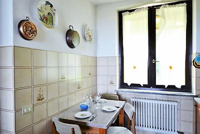 Fantastica casa vacanza con bellissimo, ampio giardino, barbecue, piscina. 3 camere da letto per un totale di 5 persone. Accogliente soggiorno con stufa a pellet, TV. L'angolo cottura,