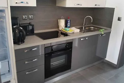 Pianterreno: (Soggiorno(divano letto doppio, TV(satellite)), Armadio cucina(tavolo da pranzo, piano cottura(2 fuochi, elettrico), caffettiera, frigo con congelatore)