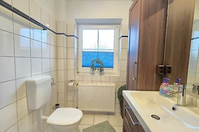 Casa vacanze vicino alla spiaggia di Nessmersiel con accogliente soggiorno, tre camere da letto, bagno luminoso, cucina e giardino