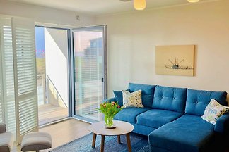 Trilocale accogliente e moderno al 3° piano con vista laterale sul Mare del Nord. Piscina e sauna in casa. 150 metri dalla spiaggia.