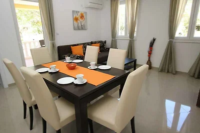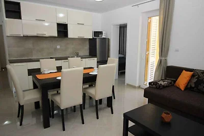 Questo appartamento (A2+2, circa 35 metri quadrati interni + 35 metri quadrati di terrazza) ha una vasca idromassaggio privata sulla terrazza in legno e può ospitare fino a 4 persone.