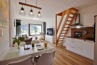 Appartamento moderno su 2 livelli con 2 bagni, piscina coperta/sauna e bella vista! Adatto per 2 adulti o famiglie con 1-2 bambini. Ideale per escursionisti e amanti della natura.