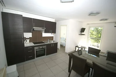 Armadio cucina(piano cottura(2 fuochi, elettrico), caffettiera, frigo con congelatore), Soggiorno/camera da letto(divano letto doppio, TV(canali televisivi tedeschi))