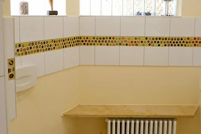 Isola di Rügen: Il graticcio dona a questo appartamento per le vacanze un fascino unico e rustico, anche nel bagno e nella grande cucina abitabile. Posizione presso il Parco Nazionale di Jasmund con la costa delle scogliere di gesso.