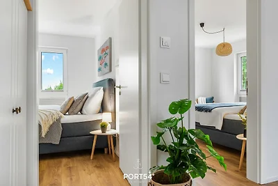 Moderno appartamento per vacanze con vista sull'acqua nella località di Olpenitz, sul Mar Baltico, ideale per coppie e famiglie che vogliono godersi il loro tempo lontano dallo stress della vita quotidiana!