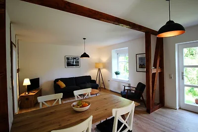 Accogliente casa bifamiliare per 2 persone con terrazza e vista sul giardino, a 100 m dalla riva del Bodden, nel cuore del Parco Nazionale Vorpom. Boddenlandschaft