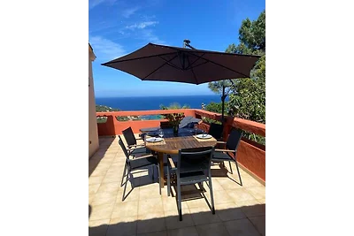 La villa accogliente e ben attrezzata, 6 persone, situato in una posizione tranquilla in una zona privata di 1500 m2 con una fantastica vista sul mare, spiaggia e montagna.