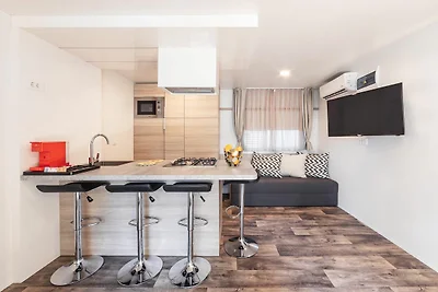 Pianterreno: (Soggiorno(TV(satellite)), Armadio cucina(piano cottura, forno a microonde, lavastoviglie, frigo con congelatore), Camera da letto(letto matrimoniale)