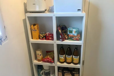 Pianterreno: (Angolo cottura(tavolo da pranzo, bollitore, mobile cucina(4 fuochi, ceramica), caffettiera(per caffé americano), forno, frigo con congelatore)