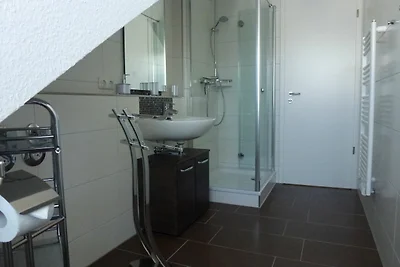L'appartamento vacanze Hofglück di 50 metri quadrati si trova al piano mansardato. Sul grande terreno ci sono numerose possibilità di seduta in giardino.