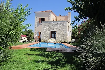 Villa in pietra naturale Preveli a Rethymno, con piscina privata, 110 m², 3 camere da letto, spazio per 7 persone. Bellissima terrazza sul tetto con mobili da salotto