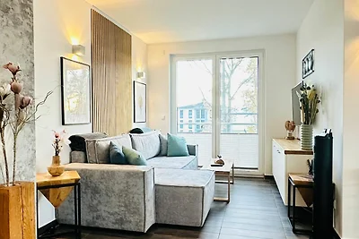 DTV 5***** oasi di benessere sotto la paglia sulla laguna di Stettino con grande sauna finlandese di lusso a luce colorata, camino e bagno benessere. Arrivare e sentirsi bene. Rilassamento per il corpo e per l'anima.
